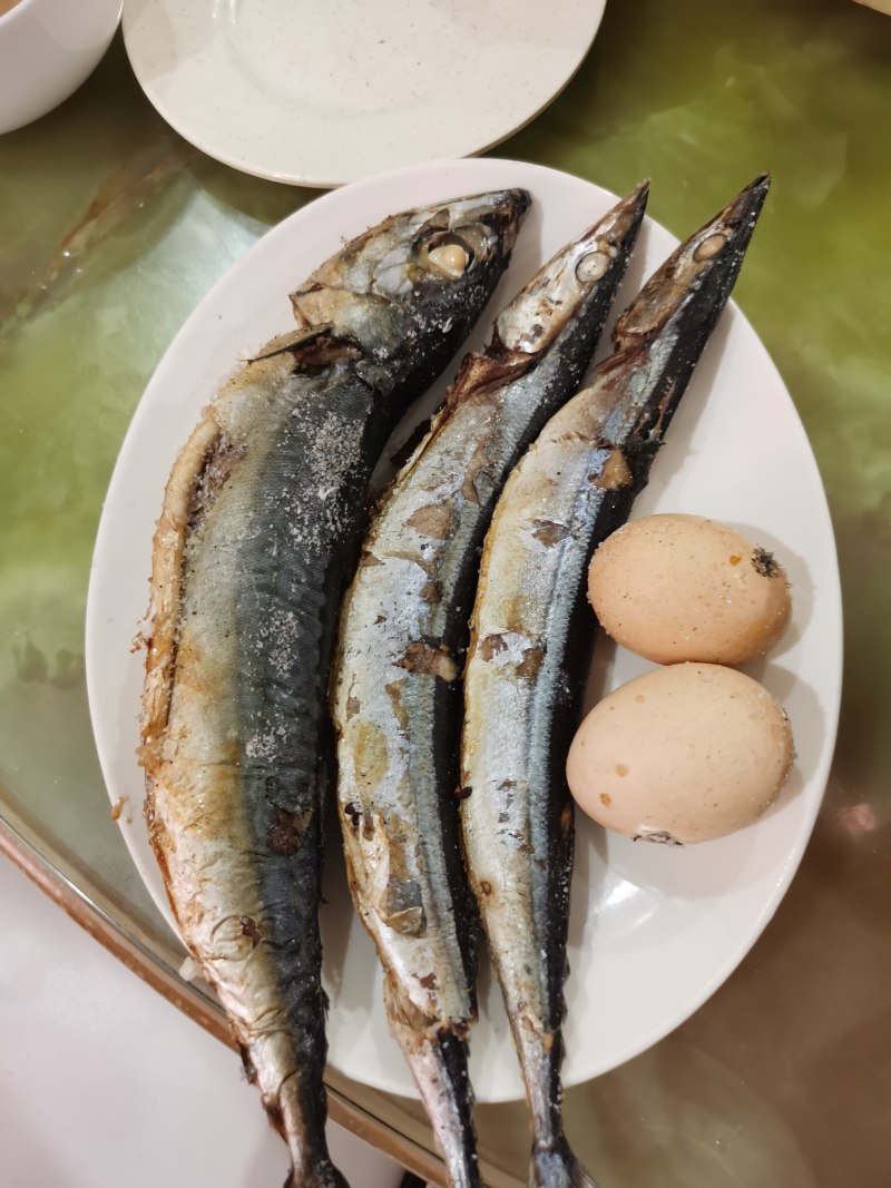 青鱼一条;秋刀鱼3条;鸡蛋3个;
