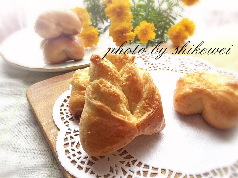 9:将面包坯切割成树叶型图案(可随意切割)。
