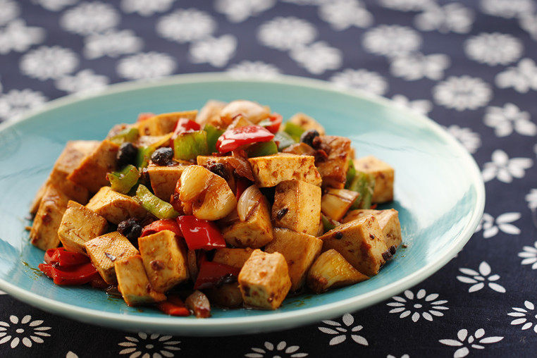 这是道简单的快炒菜,注意炒制时要先炒洋葱和大蒜,爆香后下入豆豉酱,这样经过煸炒的调味料味道更加浓郁;再依次加入臭干子丁和青红椒丁继续翻炒;最后加入盐调味,注意盐的量不用加多,豆豉酱的里面所含盐度比较大。