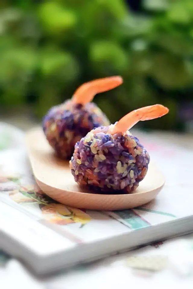 花米饭淘宝有售。花米饭只能蒸不能煮。做了三个饭团,每个50克重,3只虾即可。