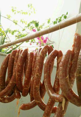将绑好的腊肠晾干,通常需要晾干2-3天。晾干的时间要根据天气和温度情况而定。