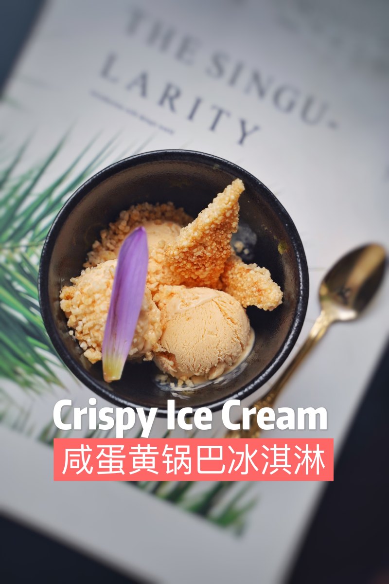 7:冰淇淋拿出来后回温十分钟,然后挖出冰淇淋球,表面撒上灵魂搭档【锅巴碎】即可。