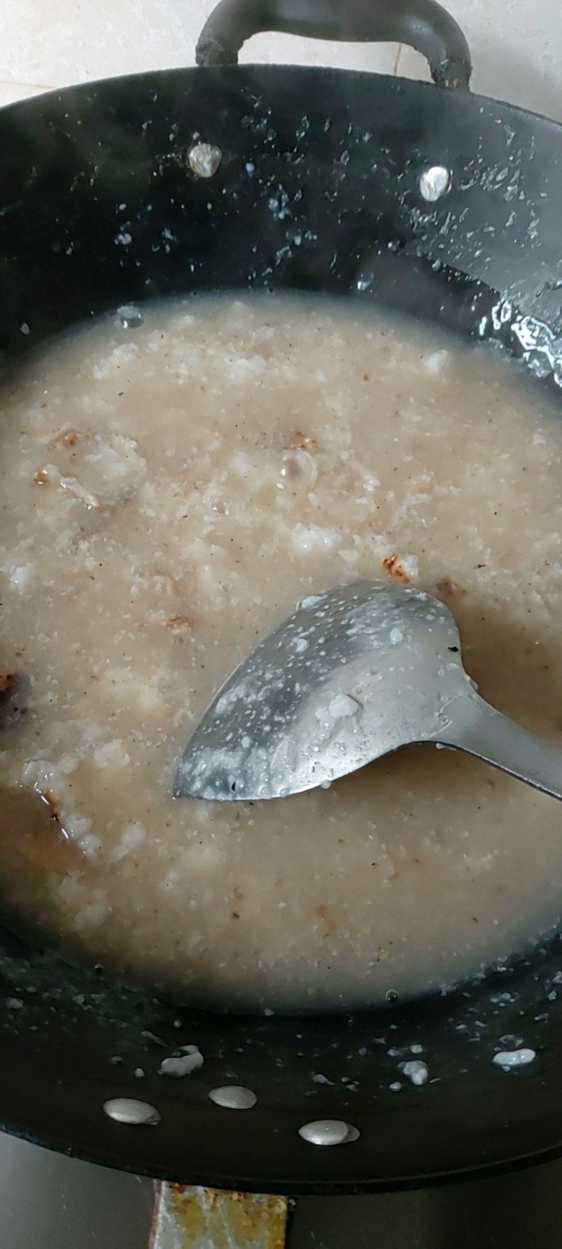 19:成为透明的粥状即可关火。最后放入香油和鸡粉调下味道。