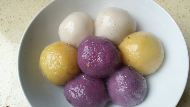 糯米粉120克;胡萝卜30克;紫甘蓝30克;抹茶粉适量;醪糟适量;