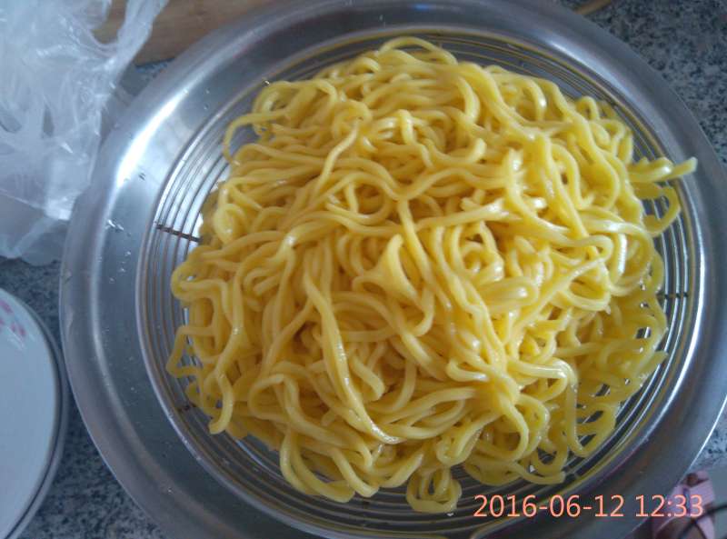 10:用之前晾凉的开水把煮好的面过一下水,捞出来再加上少许香油伴匀。
