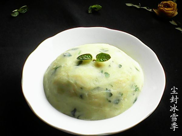 10:用饭碗倒扣成形,也可用其他模具做更漂亮的造型,稍微点缀一下,完成!
