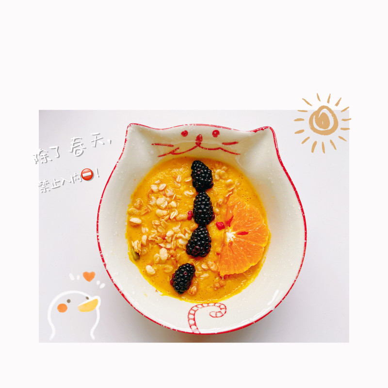 7:根据自己喜欢,随意搭配水果,营养丰富的南瓜羹。