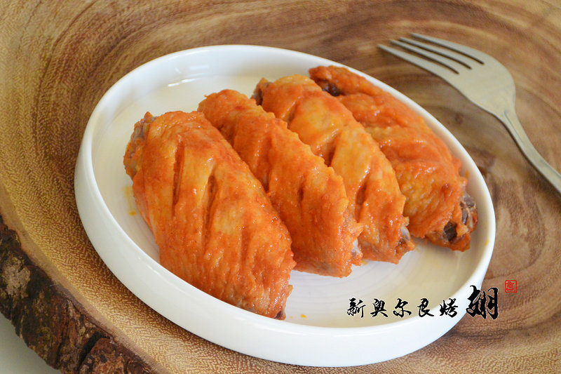7:这就是我考好的先奥尔良烤鸡翅、嫩嫩的很香、能吃辣的可以撒一些辣椒面在上面。