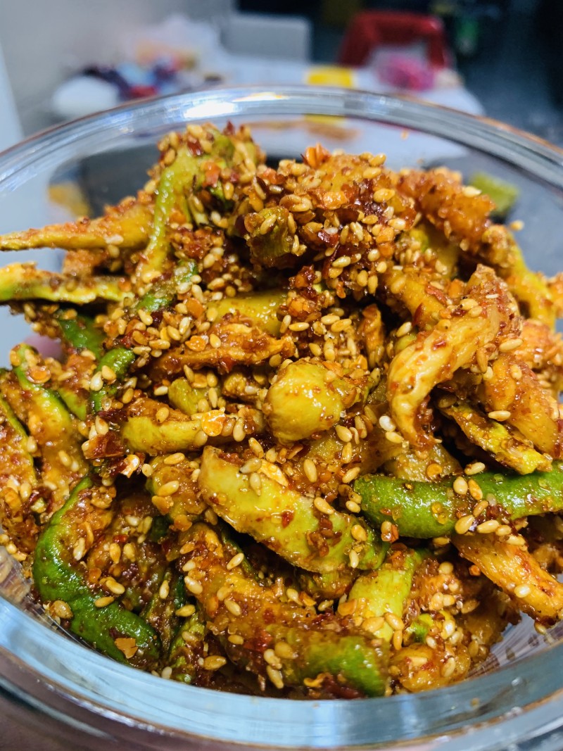 7:拌完后就可以马上尝一下咸淡,缺什么加什么,喜欢麻一点多加点花椒粉,喜欢甜一点多加一点糖就可以了,放入密封罐里等几天食用味道更好更入味,立马吃也好吃。