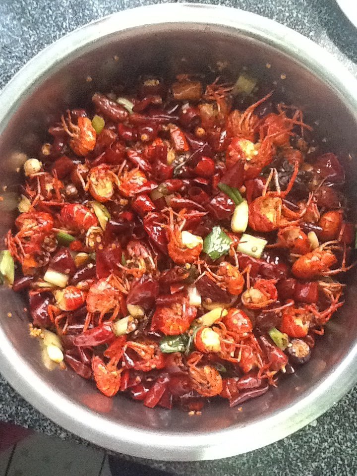 干朝天椒一斤;大葱三根;大蒜半碗;姜一大块;