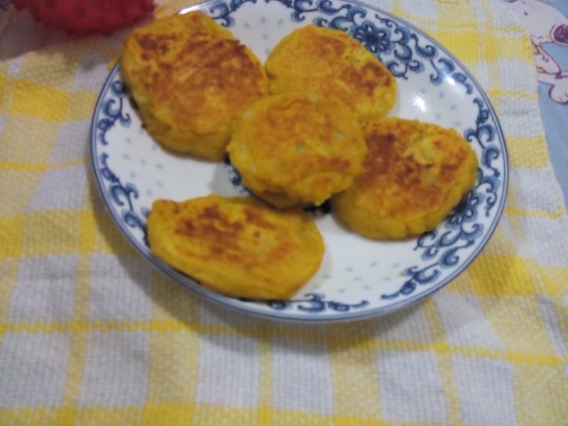 2:用手拍成这样的小饼,电饼铛三到五分钟就熟了。