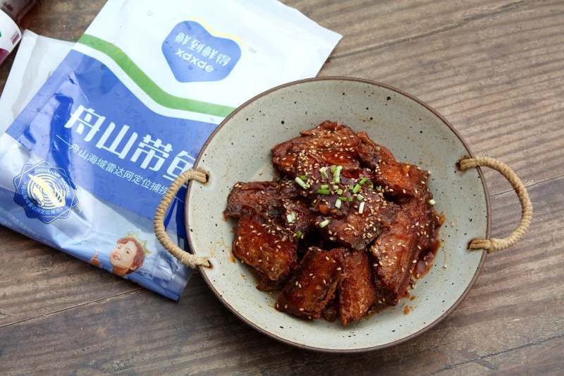 糖醋汁要小火熬一下味道才会浓厚,熬糖醋汁和复炸带鱼要同时进行,炸好的带鱼会迅速吸收酱汁,酸甜的外皮、酥脆的鱼肉。