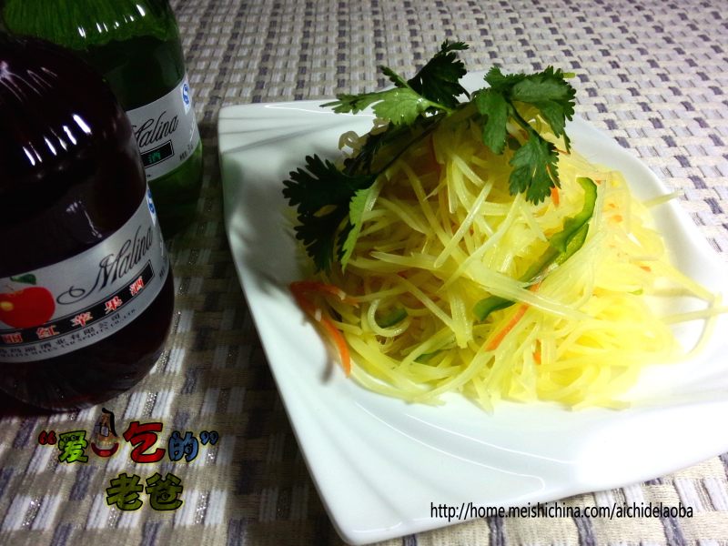 焯土豆丝的时候时间不能长。拌的时候白醋要少放。