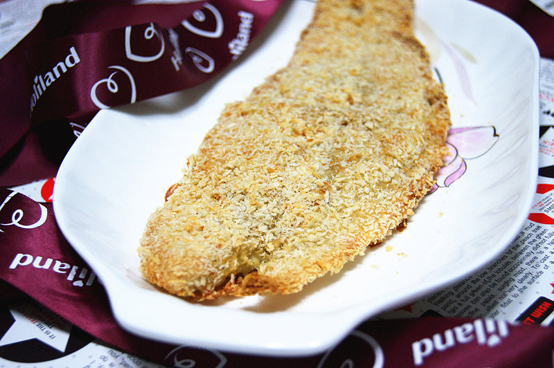 裹浆之前要擦干鱼表面的水份。烤好后趁热吃,表面酥脆,鱼肉鲜嫩,又没有什么油脂,内心和味蕾双重满足~