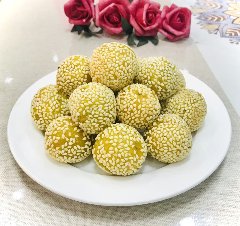 9:搓成小圆。盘子里先刷一层油防止粘住。