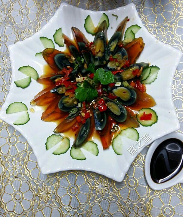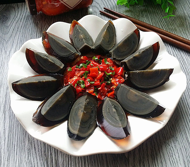 5:腌制好的剁椒加入黑胡椒粉,香醋,李锦记一品鲜,麻油拌匀浇在皮蛋上即可