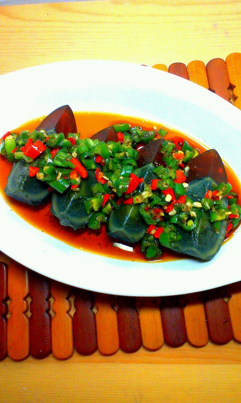 3:炒好盛起来,淋在切好的皮蛋上,等入味,就可以开吃啦