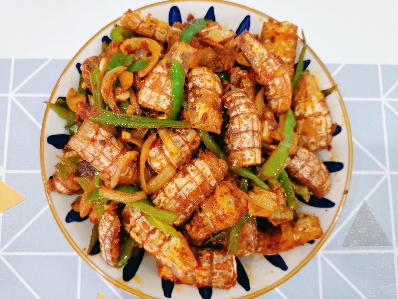 6:加皮皮虾翻炒均匀,加适量椒盐大火炒香。