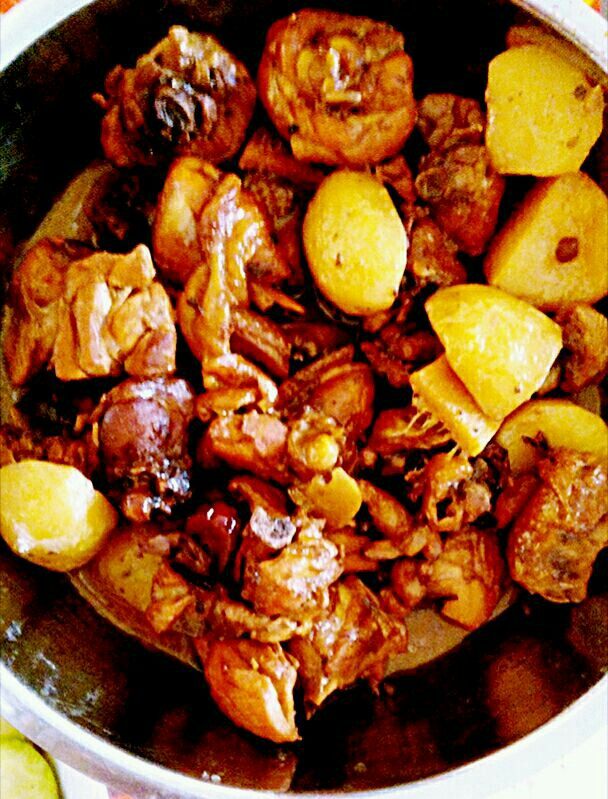 3:煮到快熟了,放入土豆,最后收汁盛盘