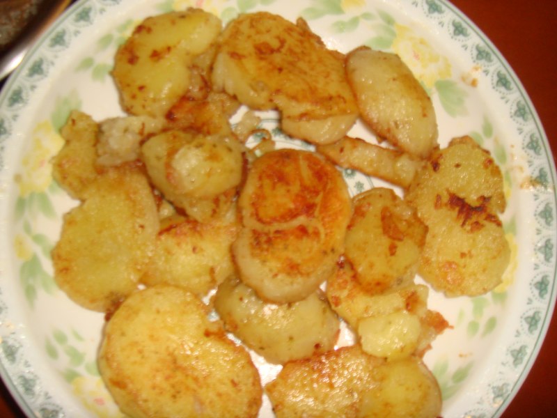 2:炒锅内放油,将土豆块上锅煎至金黄后捞出。
