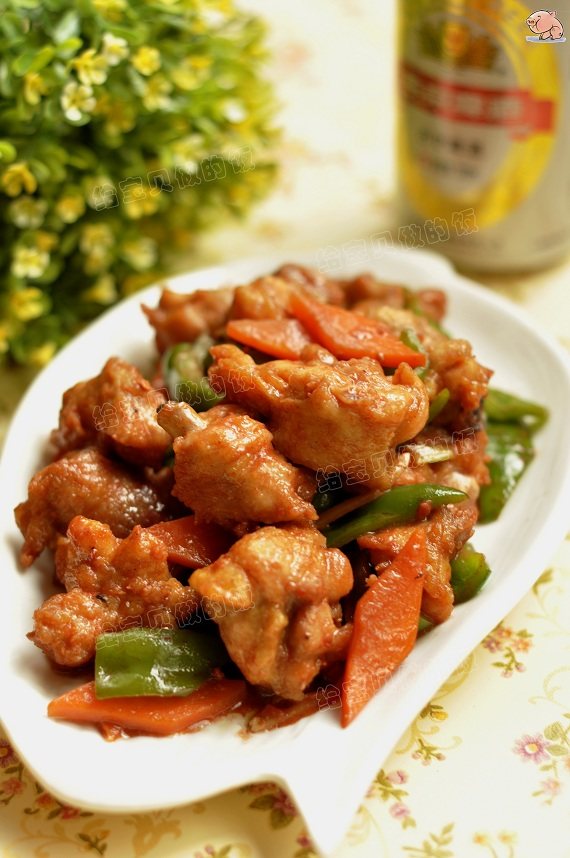 9:下入炸好的鸡块翻炒均匀即可。