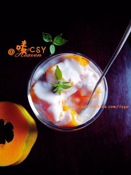 5:木瓜,酸奶一层一层铺满。