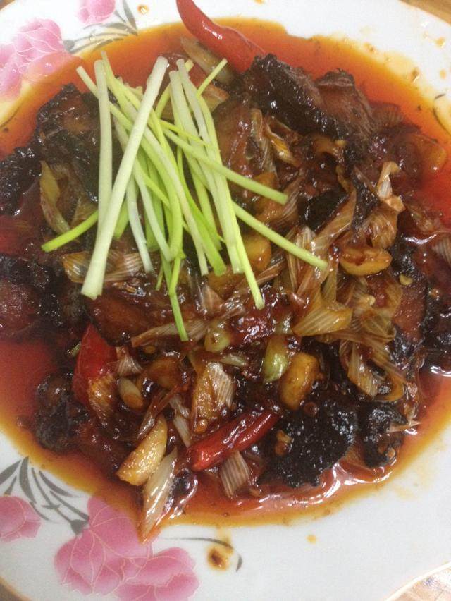1:四川熏肉若干切片(按自己吃的分量定)四川熏肉超市有的卖的,肉是咸肉熏的所以切好以后要用温水泡一段时间去咸味