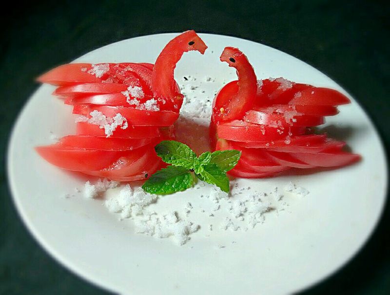 7:用焯好的西兰花装饰水草,胡萝卜装饰野花,活生生的天鹅如此美丽脱俗还带着浓浓的果香,愿他们幸福的生活在一起。