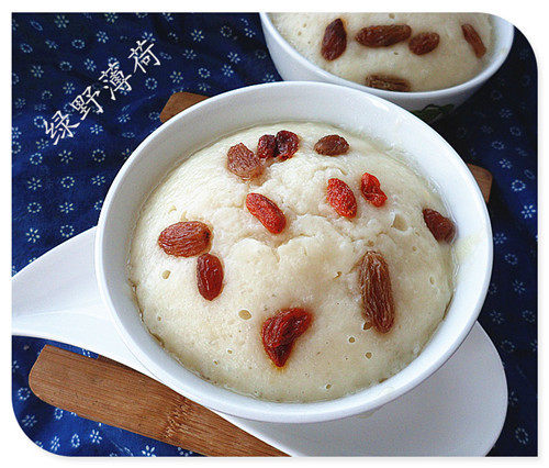 7:撒上枸杞,葡萄干放蒸锅里蒸制25分钟即可。