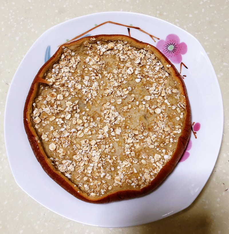 5:蛋糕液倒入电饭锅里,撒入燕麦,用煮饭键让蛋糕变熟即可。