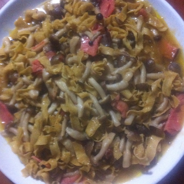 腊味蟹味菇烩炸豆皮