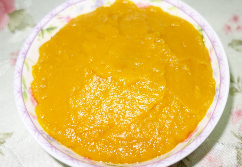 5:芒果泥快要收干时,挤入柠檬汁,不时翻拌一下。完成。