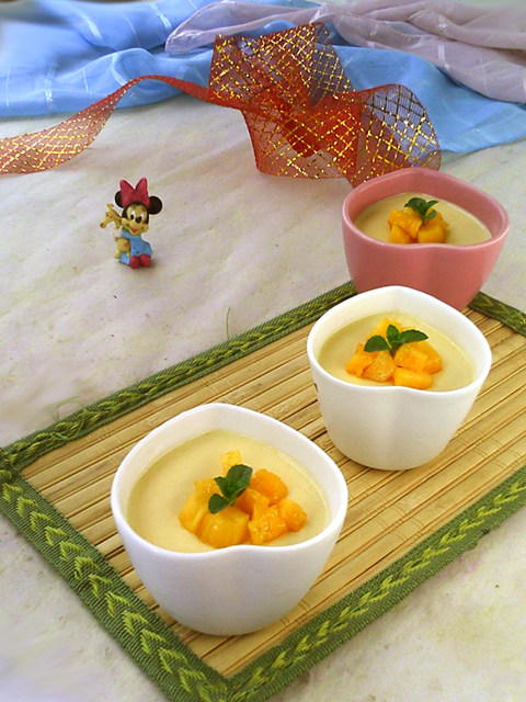 使用新鲜芒果制作,风味较佳。不同品种的芒果甜度不同,需根据所用材料酌情调整糖量。加热牛奶液时无需煮沸,砂糖溶化即可熄火。