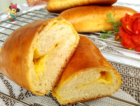 芒果奶酪酱水分较大,包馅时不宜涂太厚,以免卷的过程中外溢,而难以捏合。烘烤时间与火力需根据实际情况酌情调整。