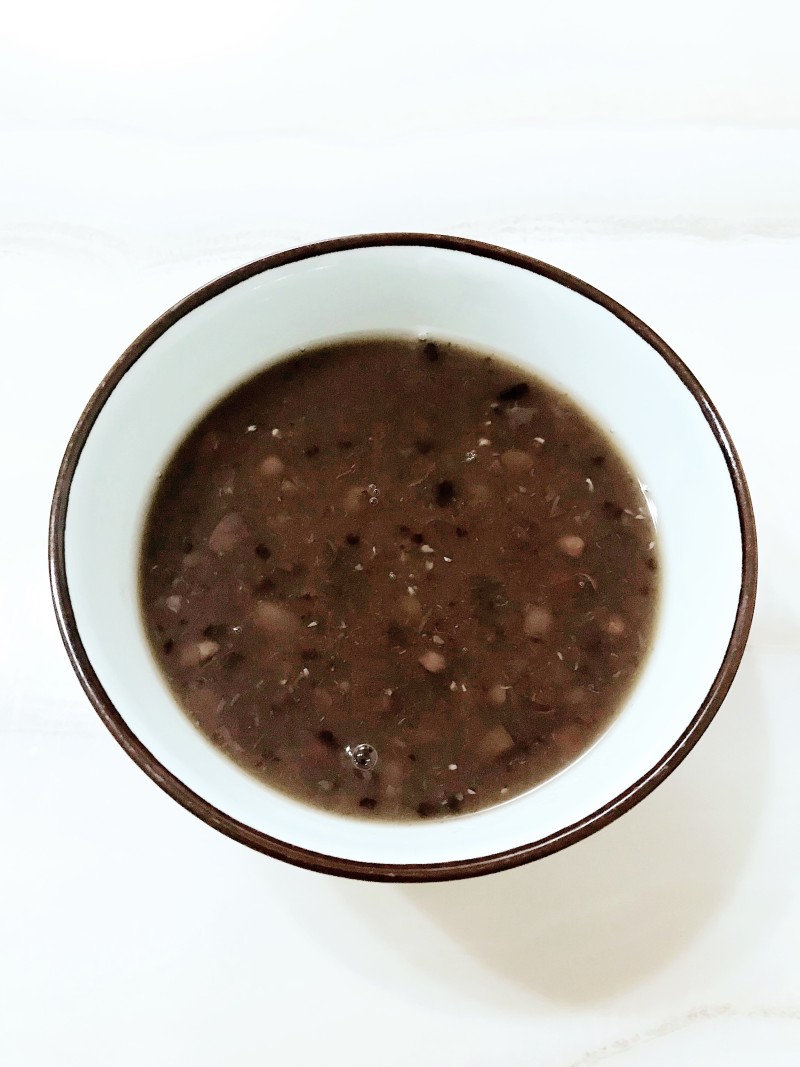 1.几种食材的比例没有固定,爱吃甜的可多放点黑糖或者红糖,不爱吃甜的可不放糖,也可在豆汤稍冷却后加适量蜂蜜调节风味;2.陈皮用年头越久的,食疗效果越好;干桂花不是必须放,放一些香气扑鼻,更促食欲;3.没有加热破壁料理机,可用煮锅小火煮熟,带些颗粒状的口感也很好。