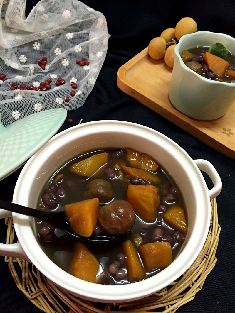 7:放入红糖和桂圆,再煮到红薯软绵即可