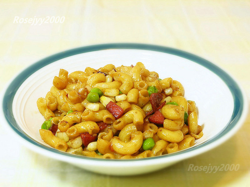 意粉1.5杯;青豆1/2杯;玉米粒1/2杯;午餐肉粒1杯;