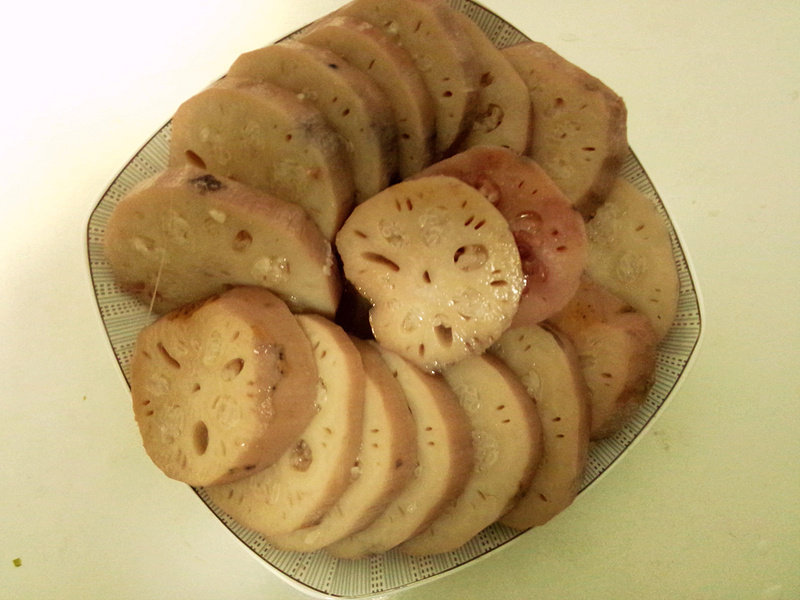 11:取出莲藕,看这颜色就很诱人吧,边切边吃,太好吃了。