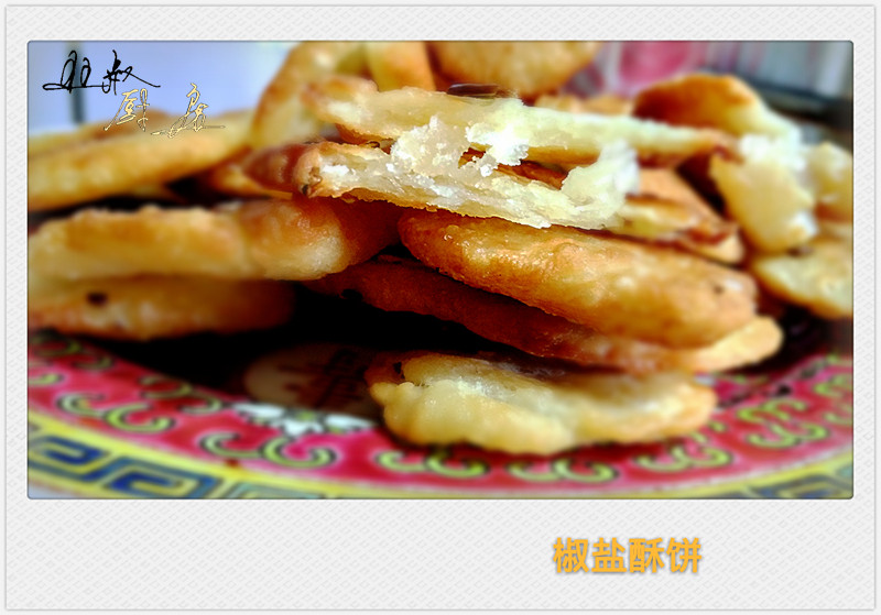 4:然后擀成大薄片。在其上面抹油、撒盐、撒花椒粉。