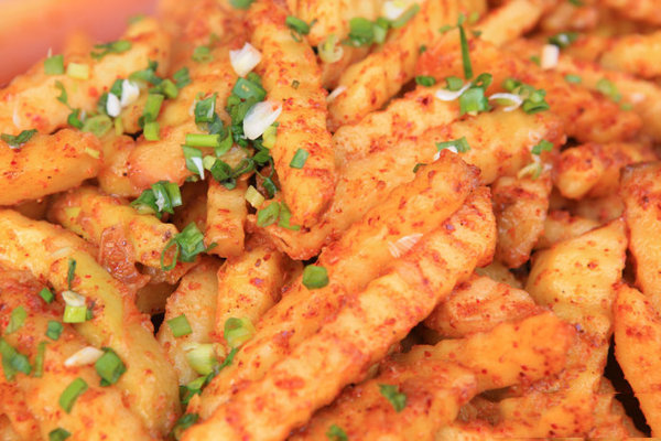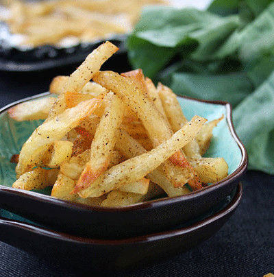4:烤盘取出,将薯条翻面,再刷少许油、椒盐后,入烤箱18分钟至金黄后即可。