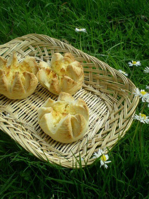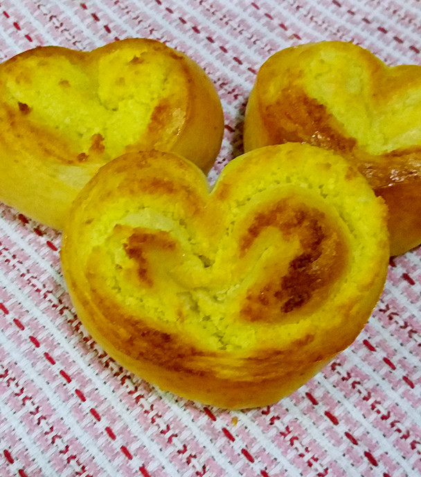 15:两种不一样的造型。感觉这个像盛开的花朵。盖保鲜膜第二次发酵后,刷上蛋白液,放入己经预热的烤箱里,上火180下火170,中下层烤20分钟。上色后加盖锡纸。