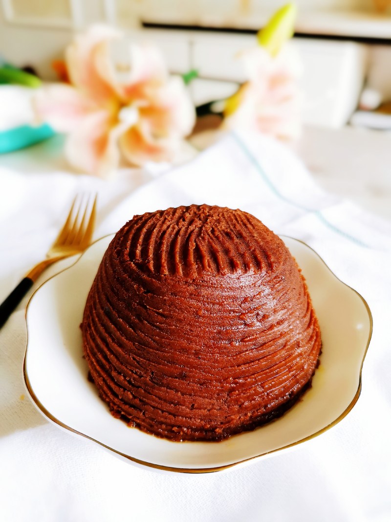 11:盛倒盘子里,用刮刀刮一下变得更好看,待凉入冰箱,还用掉了一些做了红豆沙包,还有部分炒完就直接吃掉了,每次做完都忍不住吃一些,因为太好吃了,用刮刀刮了一下,像个塔一样~