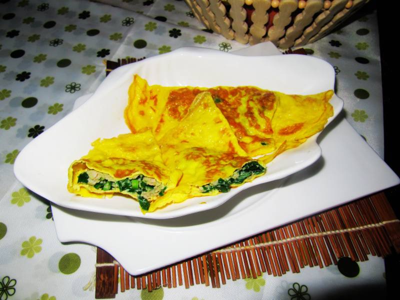 1、全程小火,蛋皮面积尽量扩大,中间不要出现窟窿。2、馅料放在一侧,在折叠出加入蛋液。