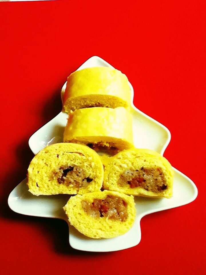 6:将咸蛋黄糯米包包好放入盘子中备用。