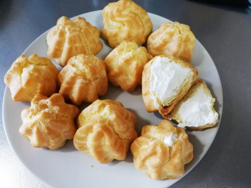 6:烤好的泡芙,凉了之后挤入打好的奶油就可以吃了,非常好吃哦。