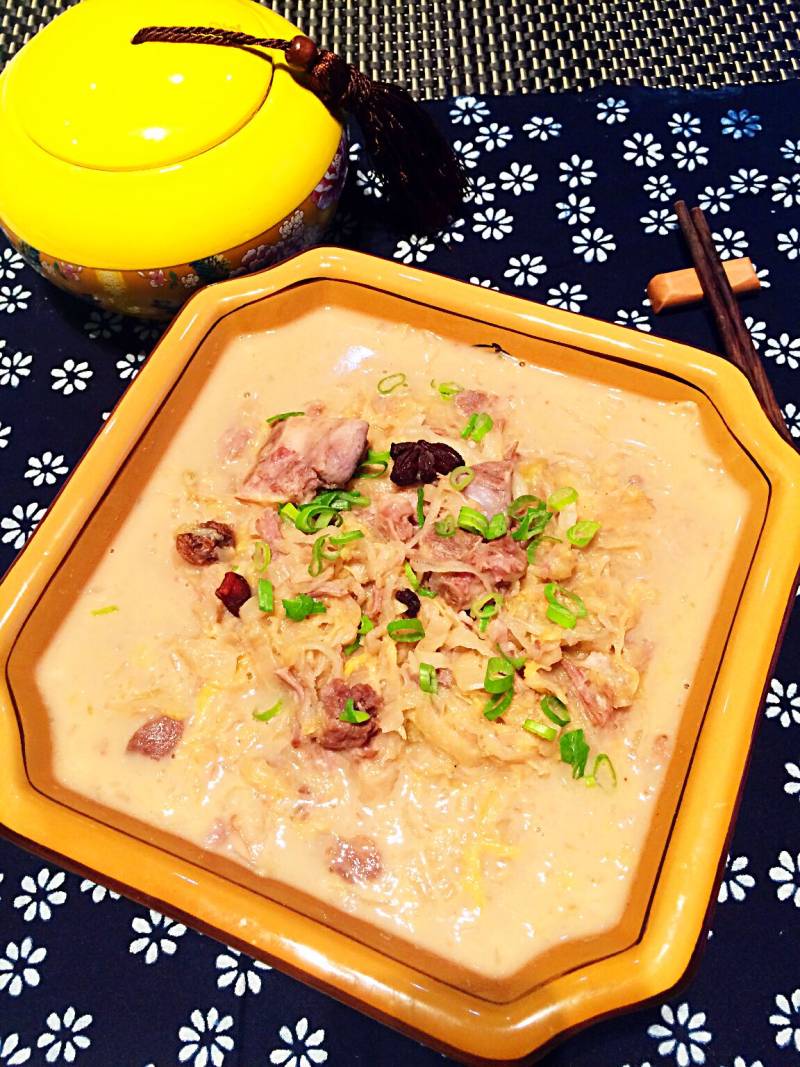 19:成为透明的粥状即可关火。最后放入香油和鸡粉调下味道。