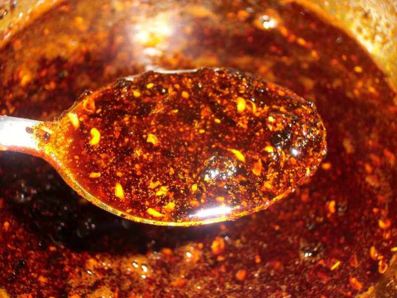 6:倒入青花椒粉搅拌均匀,关火。晾凉装瓶,密封,放入冰箱保存。
