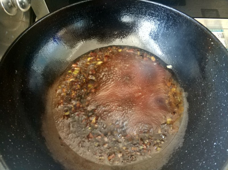4:锅中倒油,烧热,倒入切碎的豆豉翻炒一分钟左右。