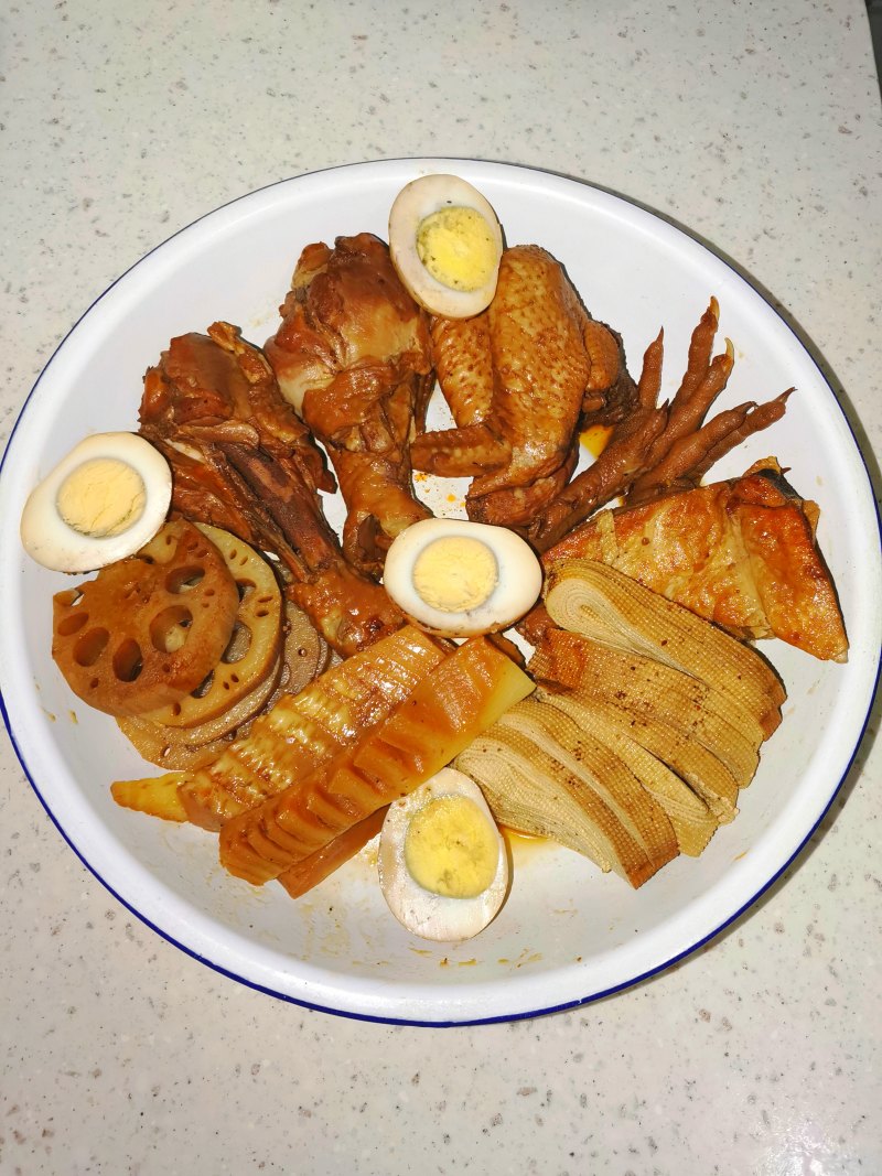 2:鸡爪,鸡翅,鸡腿,鸡蛋,藕,川卤料准备。