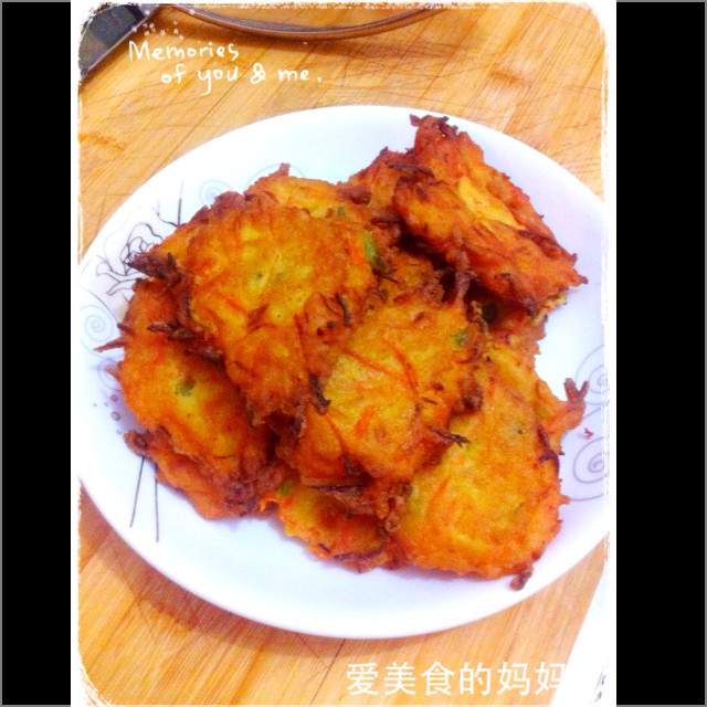 豆渣200g;面粉80g;胡萝卜丝200g;鸡蛋2个;